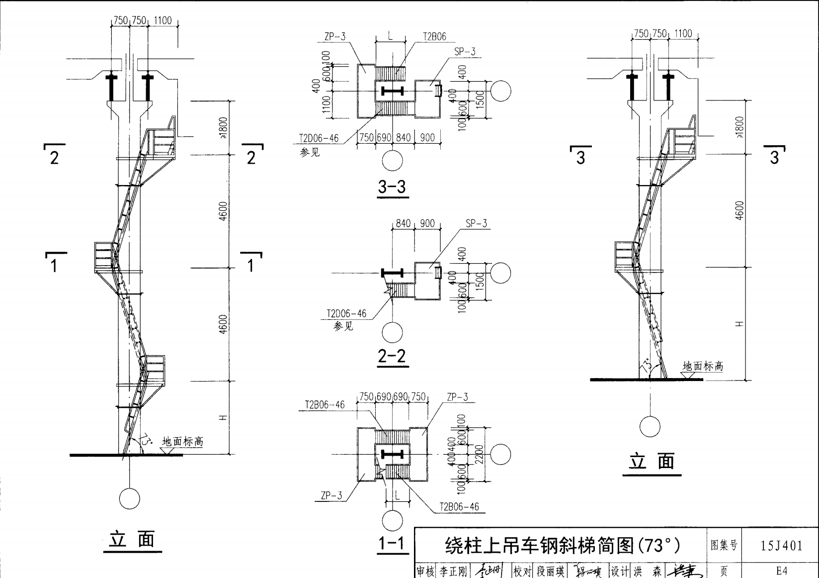 繞柱上吊車鋼斜梯簡圖(73 。)