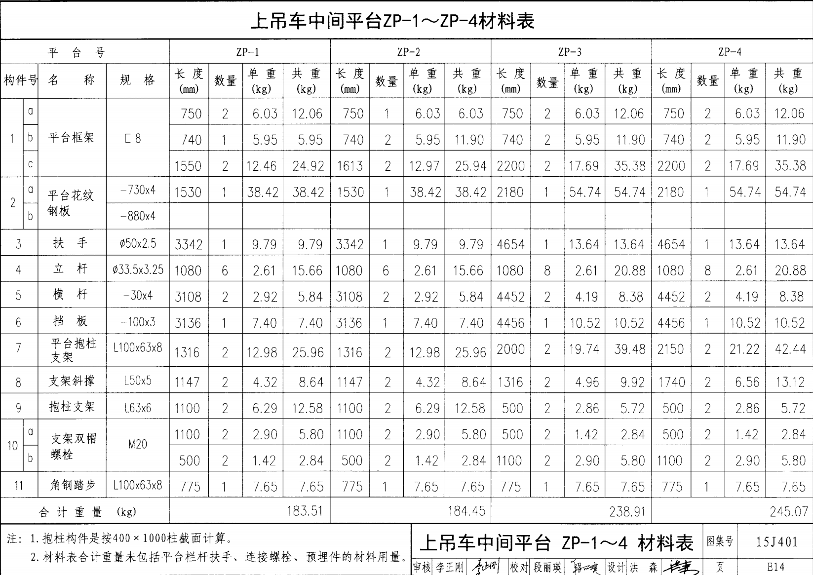 上吊車中間平臺(tái)ZP-1 ZP-4材料表