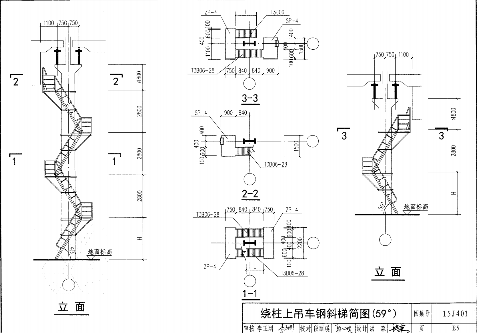 繞柱上吊車鋼斜梯簡圖(59°)